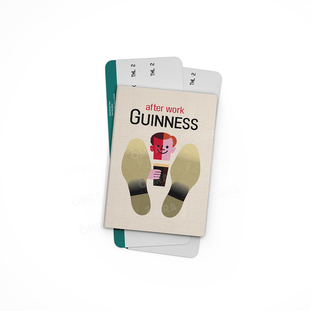 After Work Guinness Passport Cover Holder. Faux leather material. Functions as a travel wallet with slots for credit cards. Elastic drawstring closure – tuck your boarding passes in!