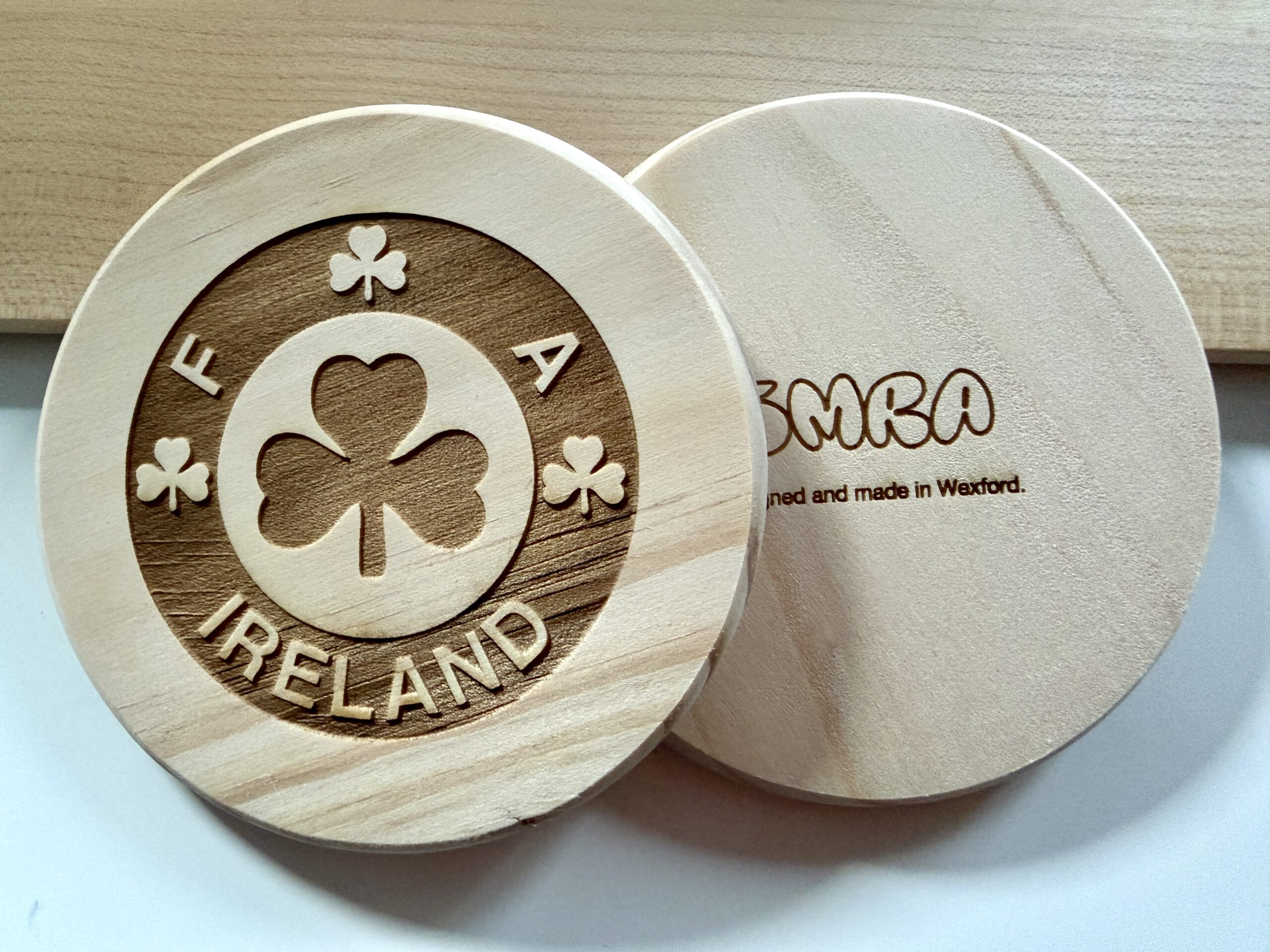 FAI Retro Wooden Engraved Coaster. Approximately 100mm x 100mm. Engraved in-house, right here in Wexford using a high quality laser system.