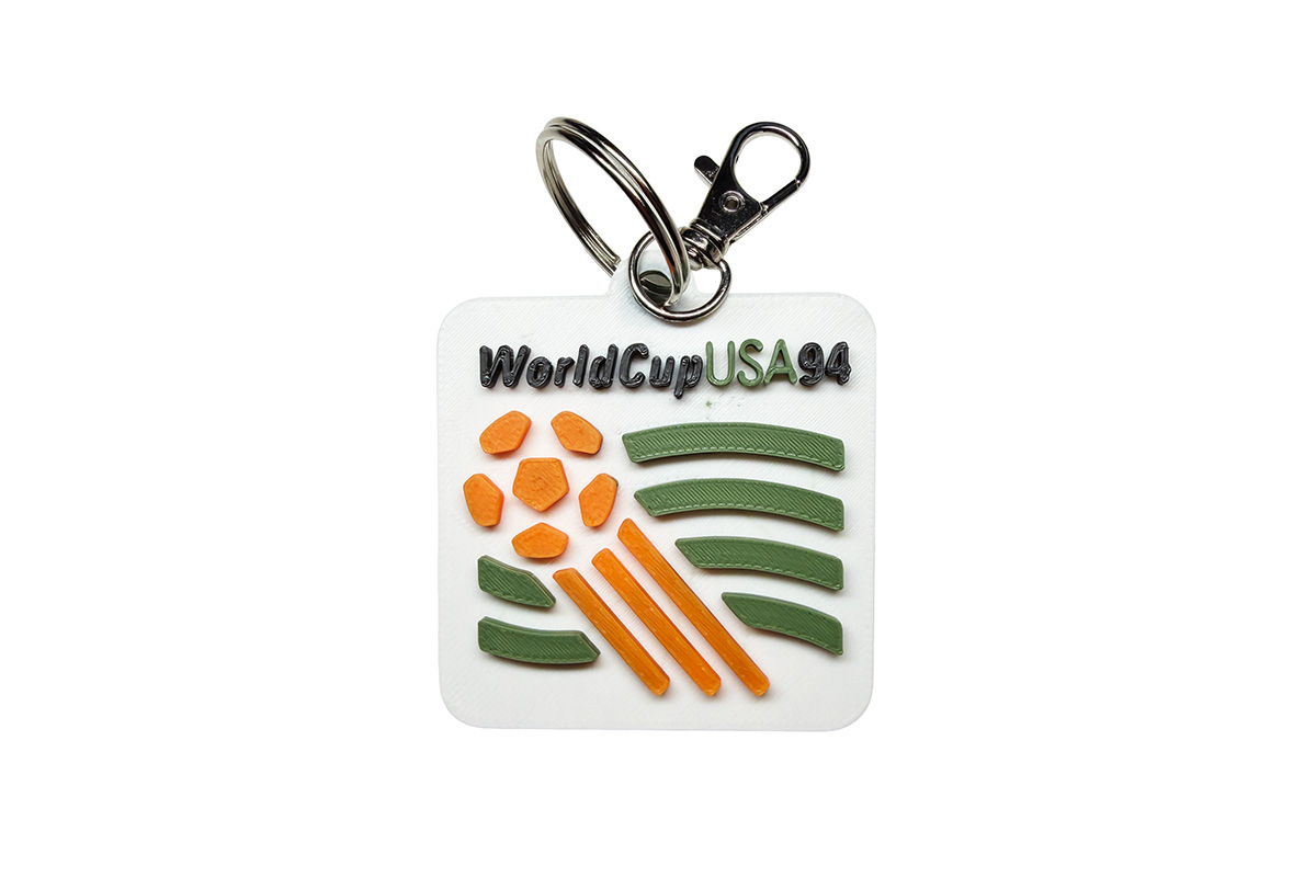 World Cup USA 94 Tricolour Retro 3D Keyring. Designed and printed in-house.